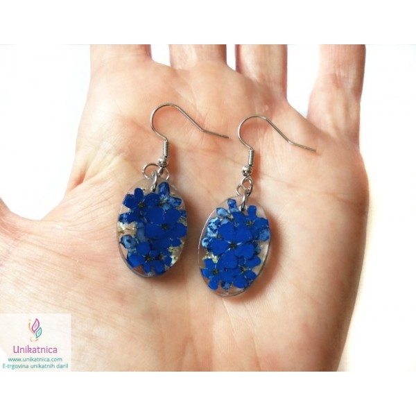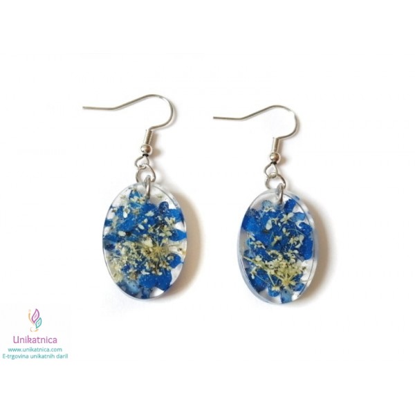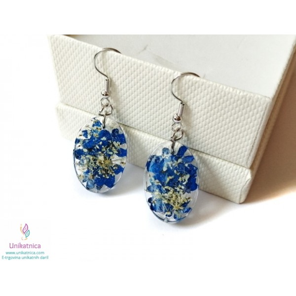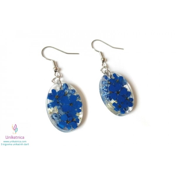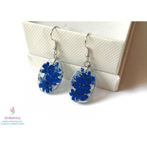 Ročno izdelani viseči cvetlični uhani, v katere sem vdelala cvetove pravih gozdnih spominčic (torilnic) in zdravilnega gozdnega korena, je razigran modni dodatek, ki si ga lahko nadanete ob najrazličnejših priložnostih.