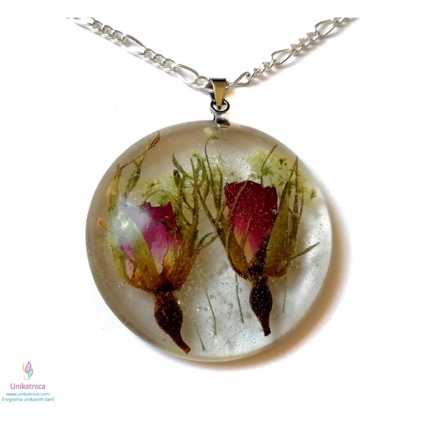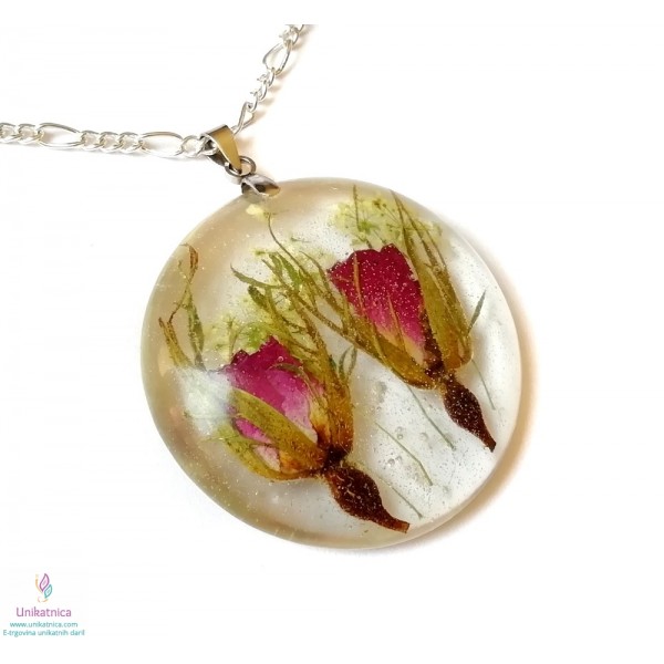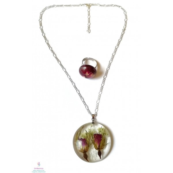 Cvetlični nakit - ogrlica in prstan s popki divje vrtnice