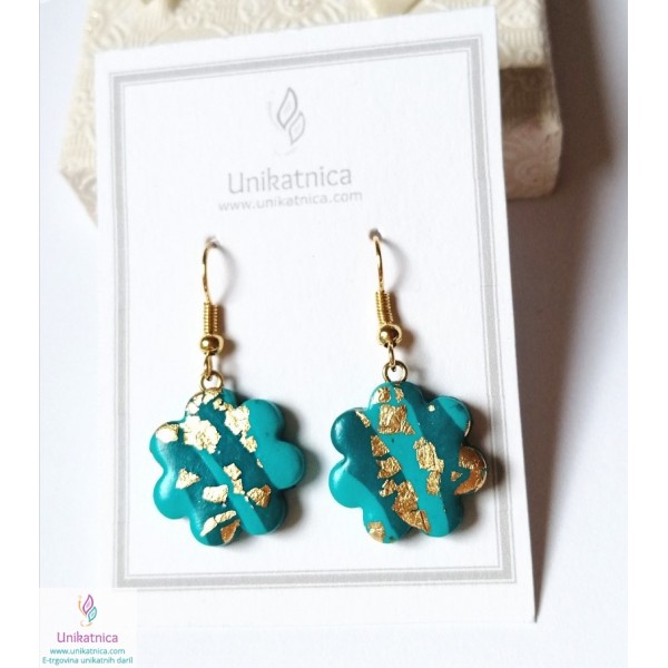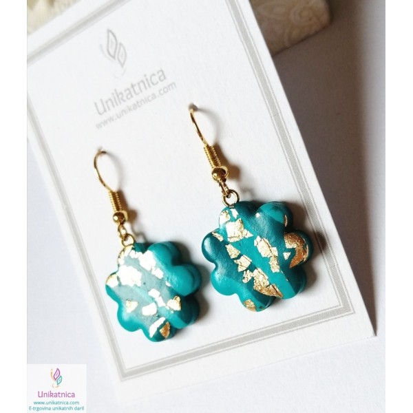Viseči uhani za ženske v turkiznih odtenkih, z dodatkom zlatitvenih lističev, so namenjeni ženskam, ki iščejo simpatične, preproste in razigrane modne dodatke. Turkizna in zlata barva bosta poživili vašo garderobo.