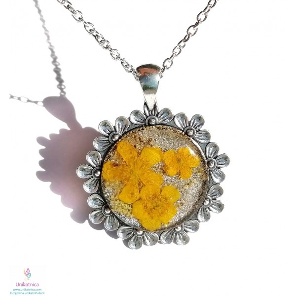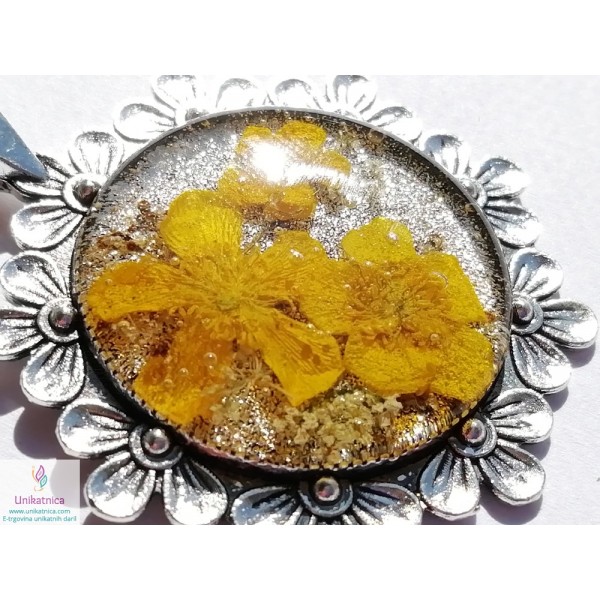 Ročno izdelana cvetlična ogrlica iz ročno nabranih cvetov travniške ripeče zlatice, je čuten, ženstven, razigran in eleganten modni dodatek, ki se vam bo podal na najrazličnejša oblačila in popestrila vaš celosten izgled. Simbolika zlatic: včasih so si zaljubljenci med seboj izkazovali zaljubljenost in ljubezen s šopkom zlatic, zlatice pa naj bi tudi odganjale zlo.