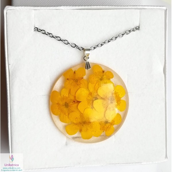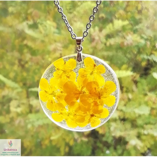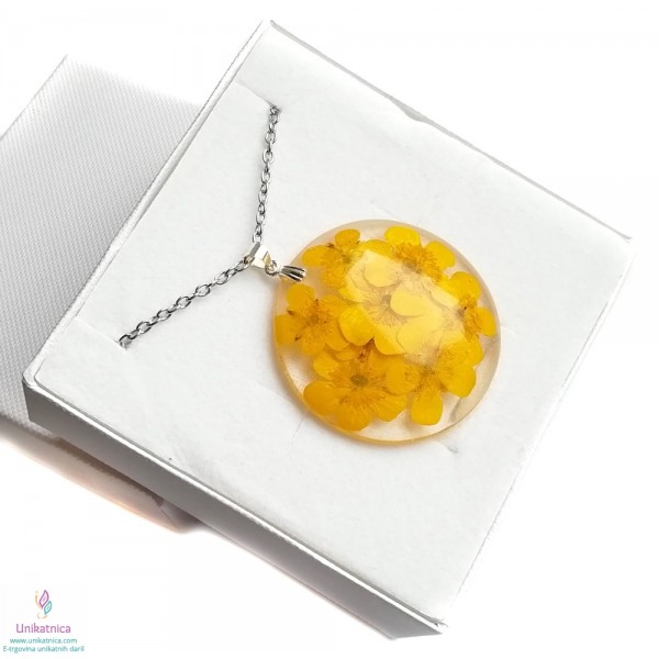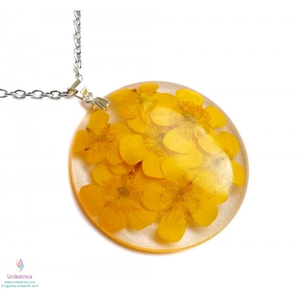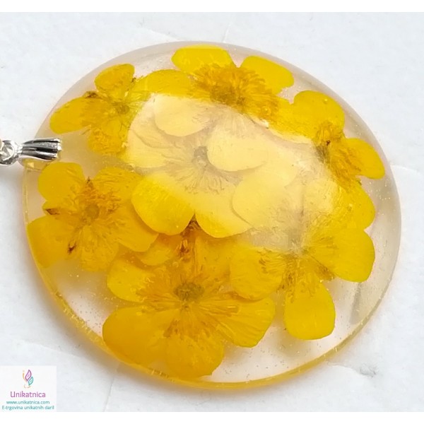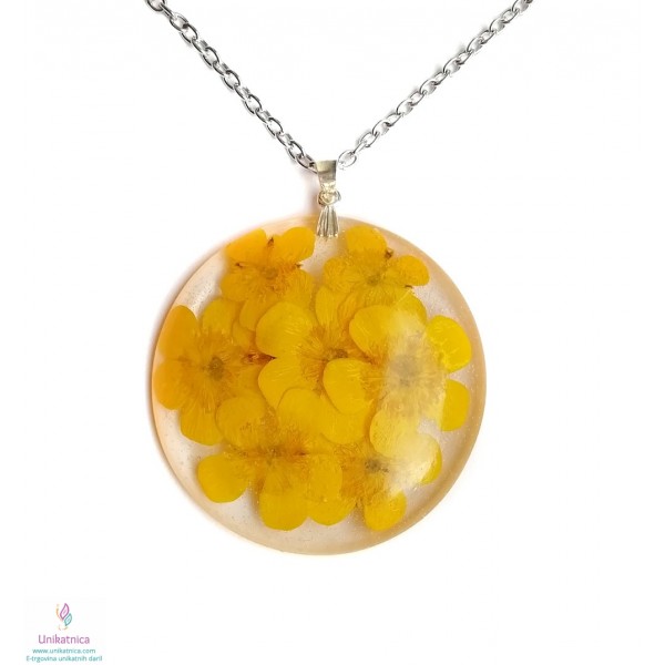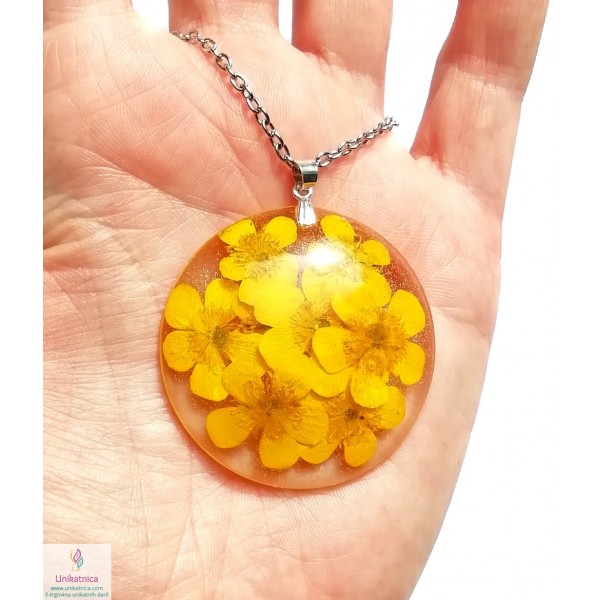 Ročno izdelana cvetlična ogrlica iz ročno nabranih cvetov ripeče travniške zlatice, je eleganten in ženstven modni dodatek, ki si ga lahko nadanete ob najrazličnejših priložnostih. Simbolika travniških zlatic - ljubezen, naklonjenost.