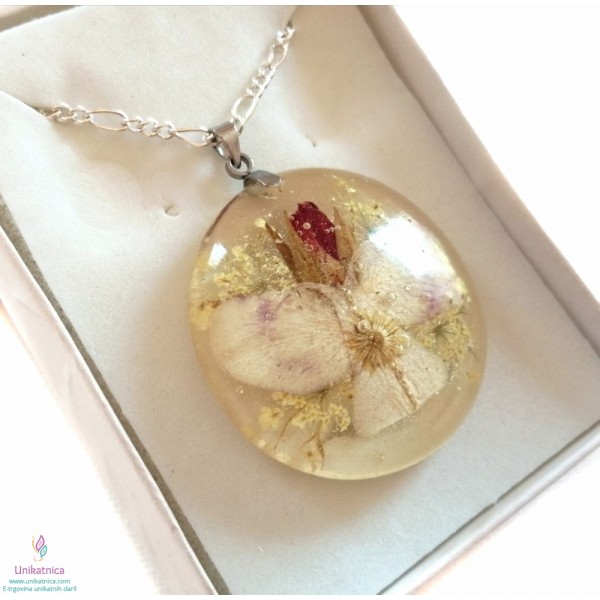 Pakiranje: ogrlico prejmete zapakirano v lični darilni škatlici, skupaj z opisom in simboloiko posameznega cvetja v izdelku, skupaj z zgodbico o nastanku cvetličnih angelov in vilink.