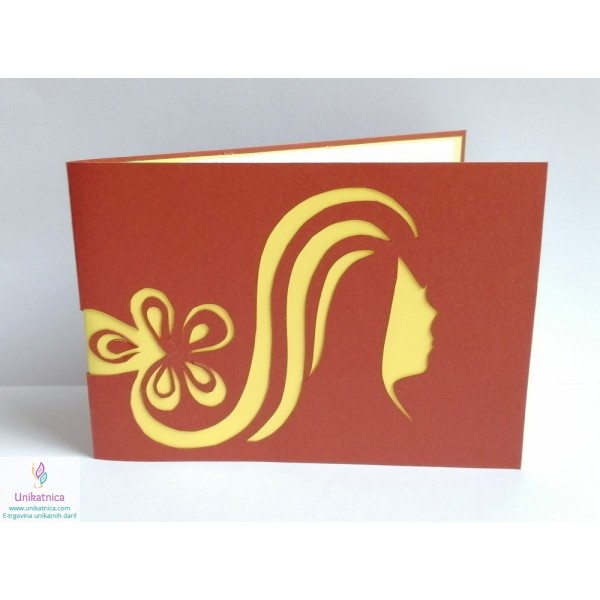 Motiv unikatne, ročno izdelane voščilnice z zodiakalnim znakom Device je avtorsko delo. Motiv Device je ročno izrezan iz različnih materialov različnih barv in teksture. V voščilnici se skriva še presenečenje - na notranji levi strani se v vsaki voščilnici nahaja opis horoskop znaka, njegove osnovne značilnosti, ki jih bo obdarovanec z veseljem prebral, tako za žensko, kot tudi za moškega.