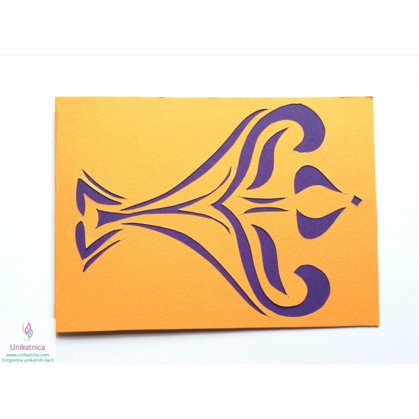 Motiv unikatne, ročno izdelane voščilnice z zodiakalnim znakom Strelca je avtorsko delo. Motiv Strelca je ročno izrezan iz različnih materialov različnih barv in teksture. V voščilnici se skriva še presenečenje - na notranji levi strani se v vsaki voščilnici nahaja opis horoskop znaka, njegove osnovne značilnosti, ki jih bo obdarovanec z veseljem prebral, tako za žensko, kot tudi za moškega.