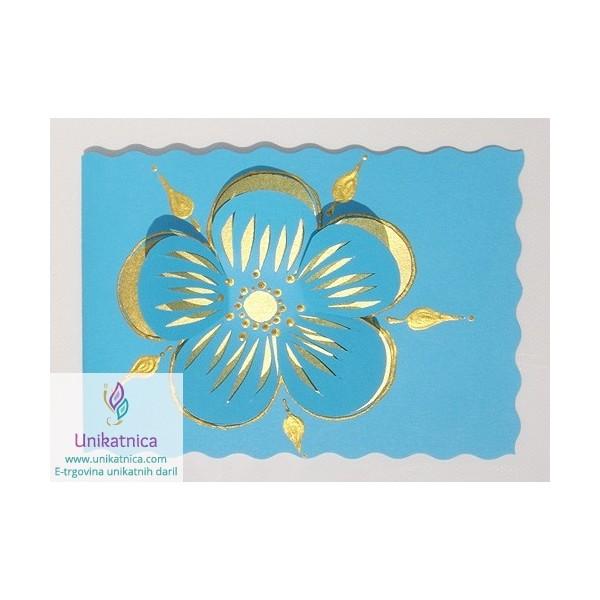 Unikatne voščilnice za rojstni dan - modra roža, zlata