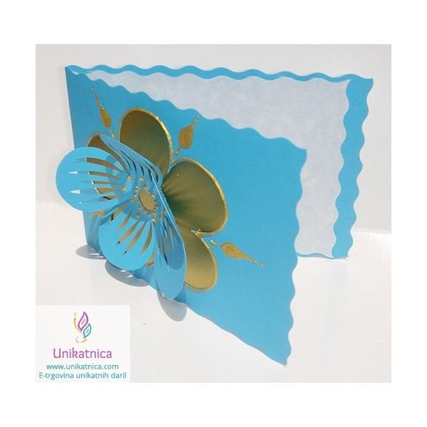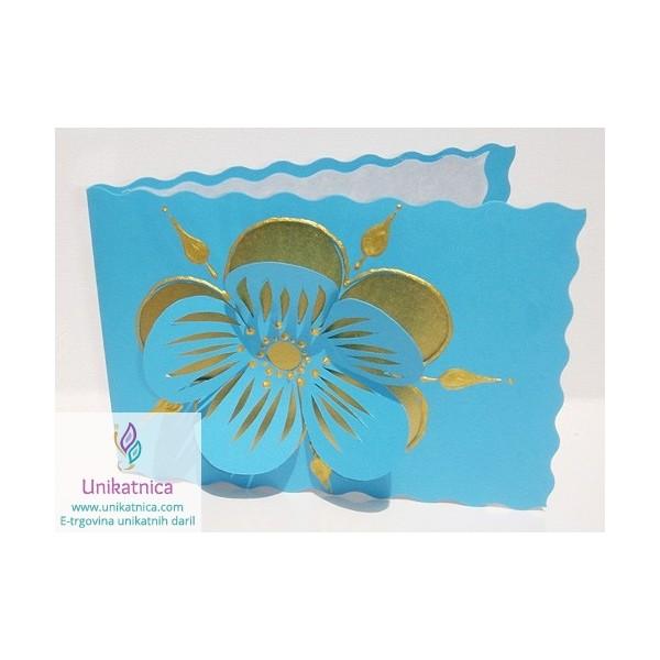 Voščilnice za rojstni dan, kot je ta svetlo modra voščilnica z zlato konturo in motivom ročno izrezanega cveta, je lepo, domiselno in uporabno darilo za vse, ki iščete unikatna darila.
