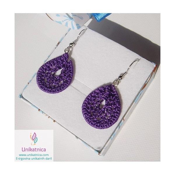 Temno vijolična - kvačkani uhani, kapljica