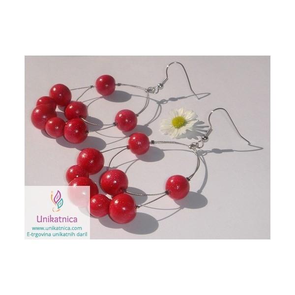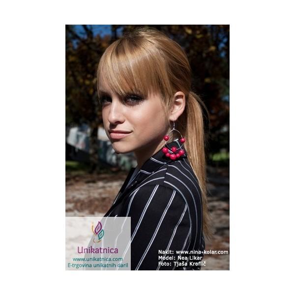 Unikatni, ročno izdelani uhani z unikatnimi, ročno izdelanimi kroglicami v svetleči bordo barvi in unikatnim vzorcem iz žice.