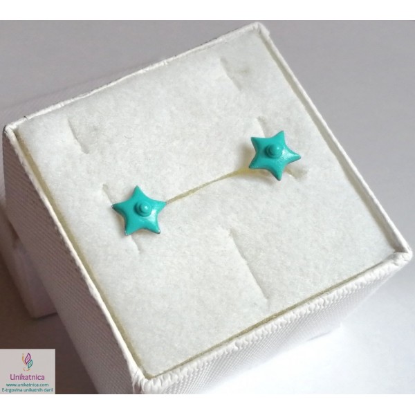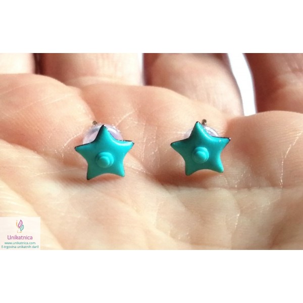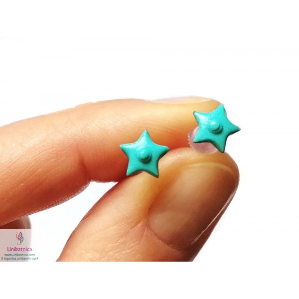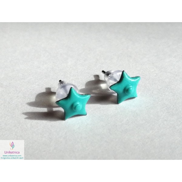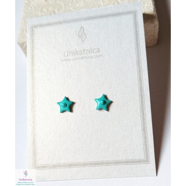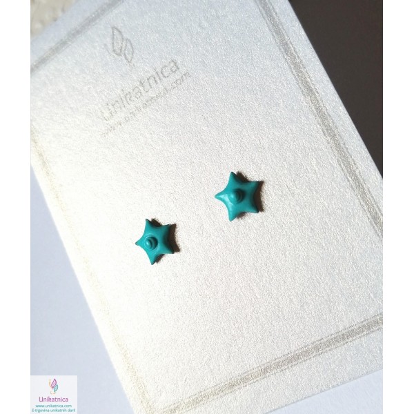 Unikatni, ročno izdelani uhani z motivom turkizne zvezdice.
