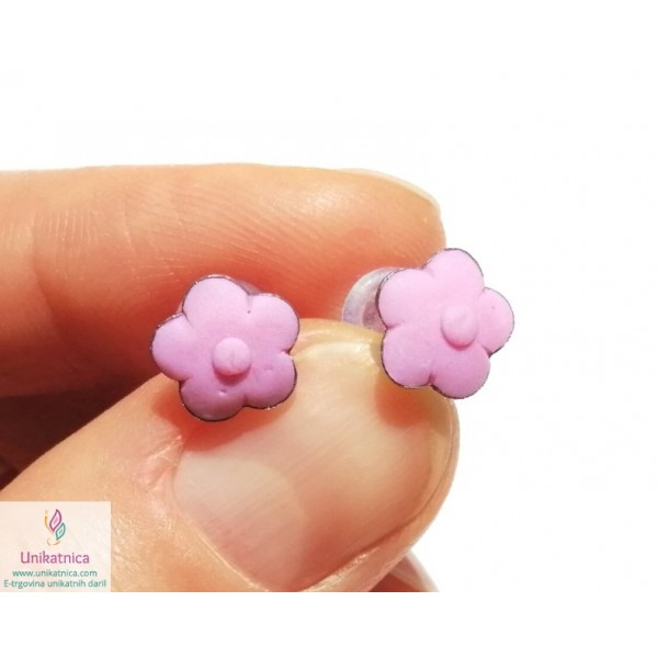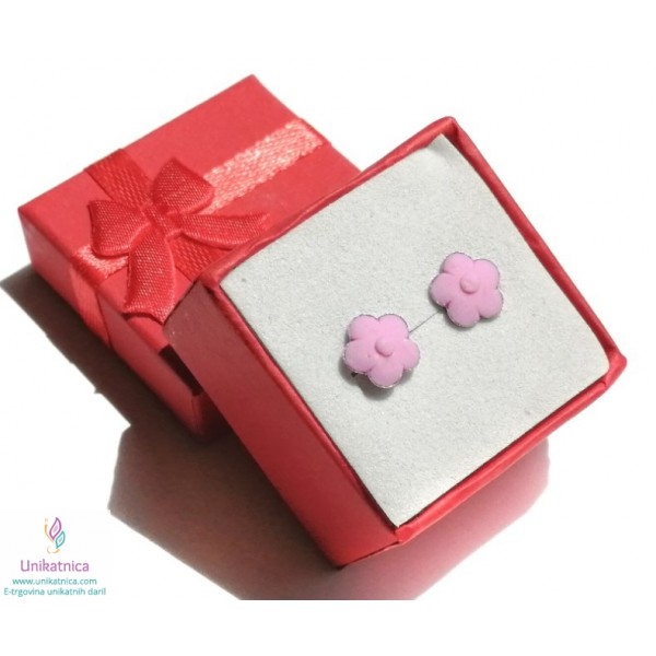 Unikatni, ročno izdelani žensk o dekliški uhani z motivom roza rožice.