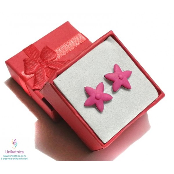 Unikatni, ročno izdelani uhani z motivom ciklamne zvezdice.