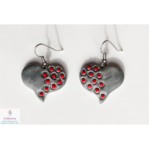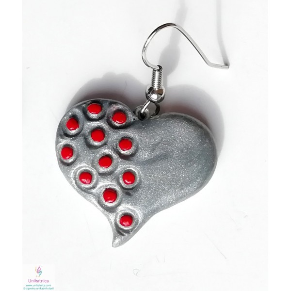Unikatni uhani v obliki srca v srebrno rdeči barvi