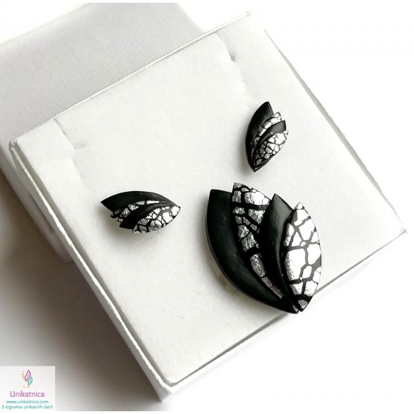 Uhani in prstan z motivom srebrno črnega lista, so lično in uporabno darilo ob različnih posebnih, tako elegantnih, ekstravagantnih, kot tudi glamuroznih priložnostih. So lahki za nošenje, brez niklja in vsestransko uporabni.