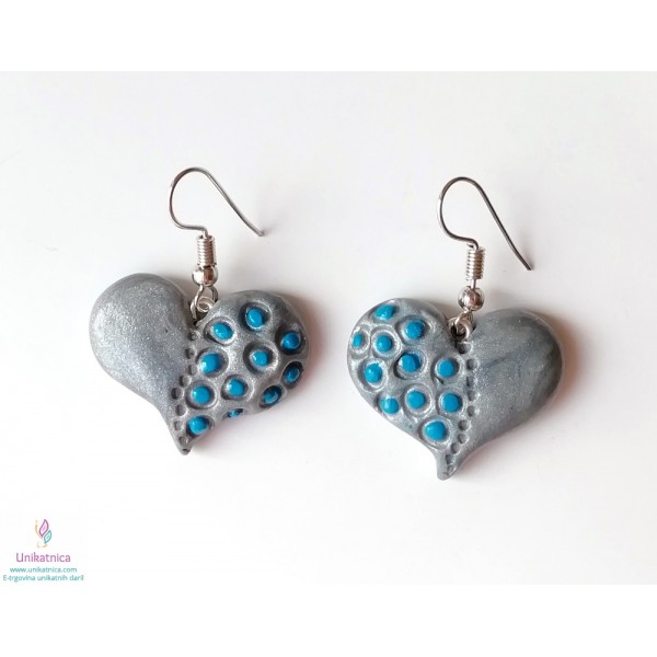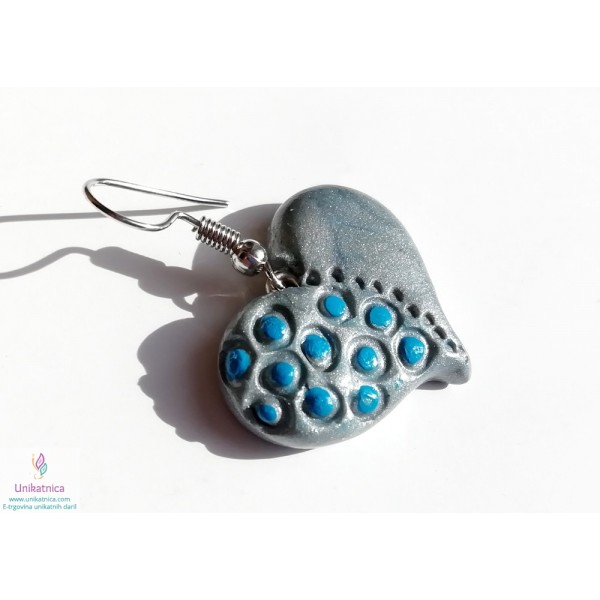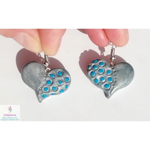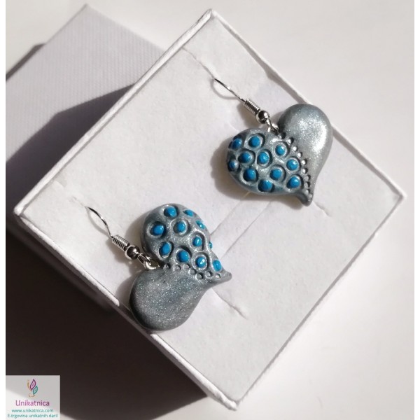 Unikatni uhani v obliki srca v modro srebrni barvi
