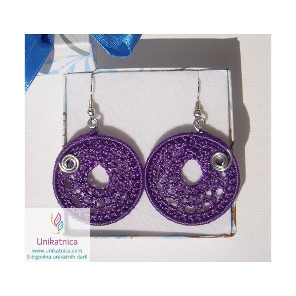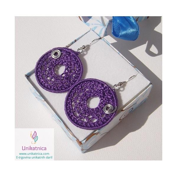 Kvačkani uhani v temno vijola barvi, z unikatnim vzorcem, so elegantni in ljubki, ročno izdelani unikatni uhani, ki se bodo ženskam lepo podali na oblačila v modnih odtenkih pomladi in poletja. Ti temno vijola kvačkani uhani so namenjeni vsakdanjim, a tudi slavnostnim priložnostim.