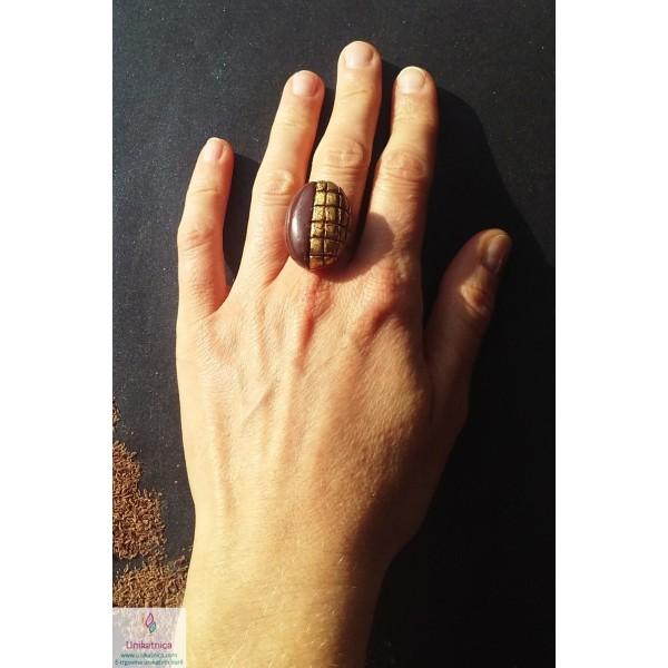 Unikatni prstan z imenom Rjavo zlata strast je ročno izdelan kos nakita, namenjen ženskam, ki želite v sebi vzbuditi občutke zavetja in topline in popestriti svojo garderobo z izbranim kosom nakita za posebne priložnosti.