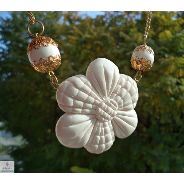 Esenca belega cveta - unikatna ogrlica v obliki rože