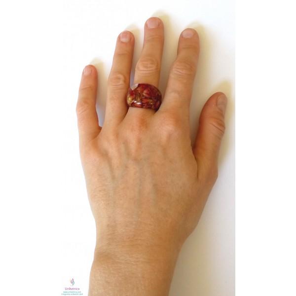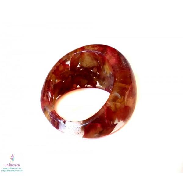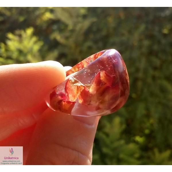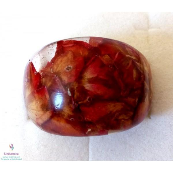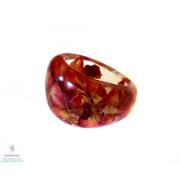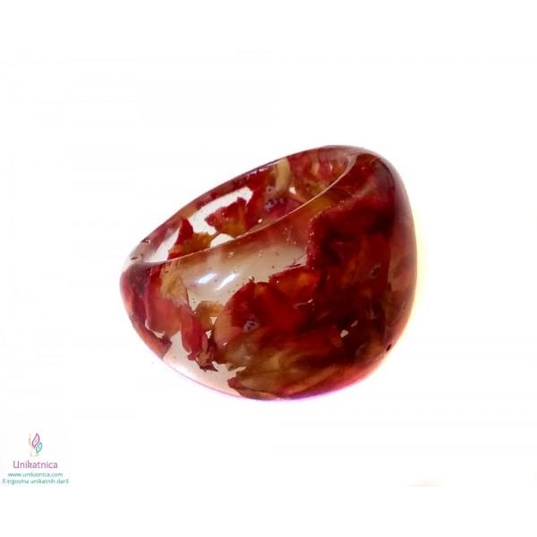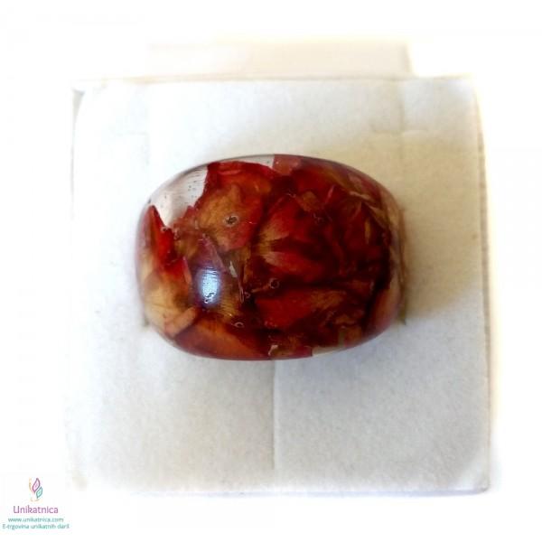 Ročno izdelan cvetlični prstan iz celega, s cvetnimi lističi rdeče vrtnice, je eleganten modni dodatek, ki si ga lahko nadanete ob najrazličnejših priložnostih.