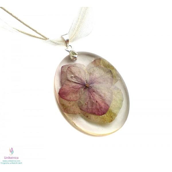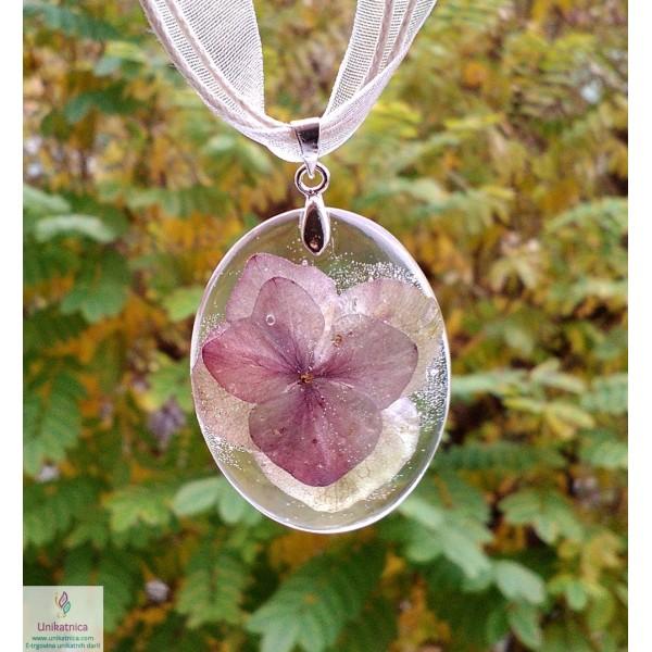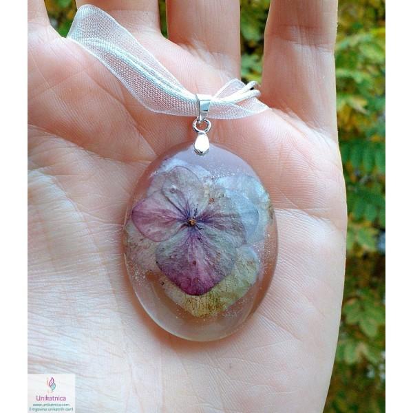 Ročno izdelana cvetlična ogrlica iz ročno nabranih cvetov domače hortenzije, je eleganten in ženstven modni dodatek, ki si ga lahko nadanete ob najrazličnejših priložnostih. Simbolika hortenzije večplastnost analitičnega in tenkočutnega uma.