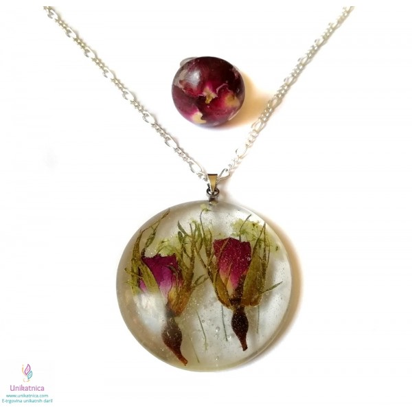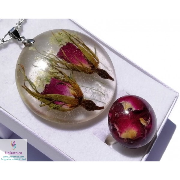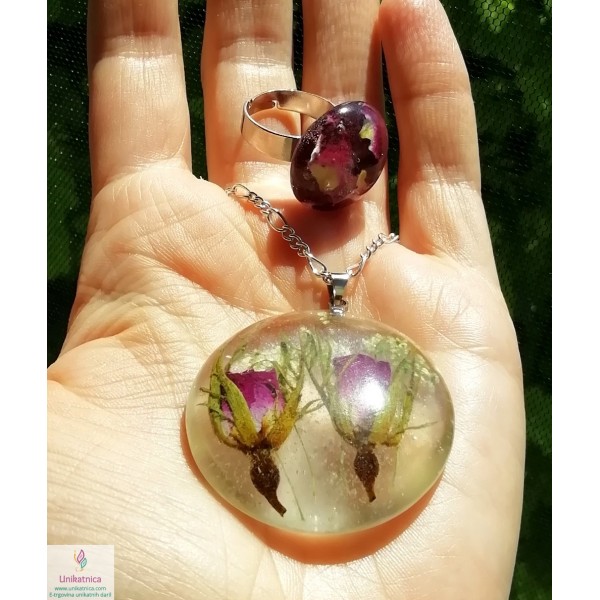 Cvetlični nakit - ogrlica in prstan s popki divje vrtnice