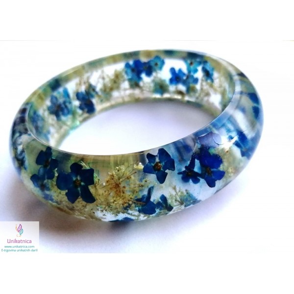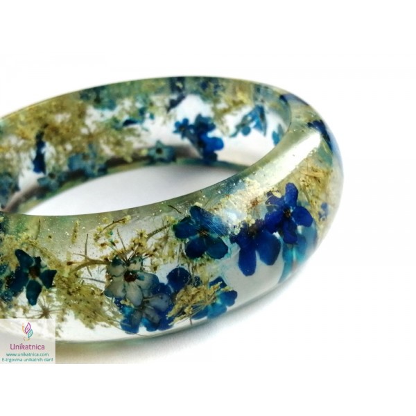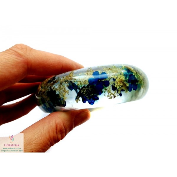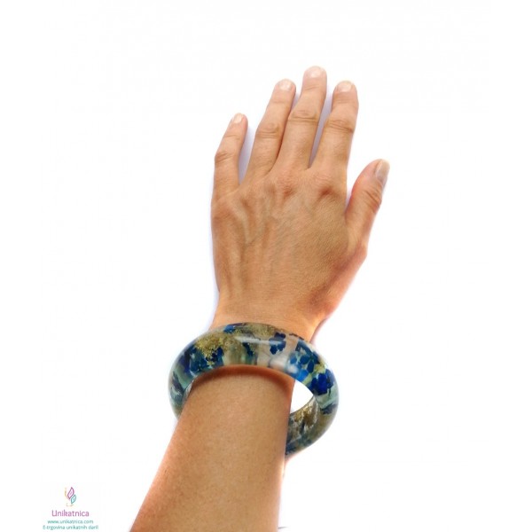Ročno izdelana cvetlična zapestnica, v katero sem vdelala cvetove ter cvetne lističe orhideje, marjetice ter zdravilnega gozdnega korena, sta ličen in eleganten modni dodatek, ki si ga lahko nadanete ob najrazličnejših priložnostih.