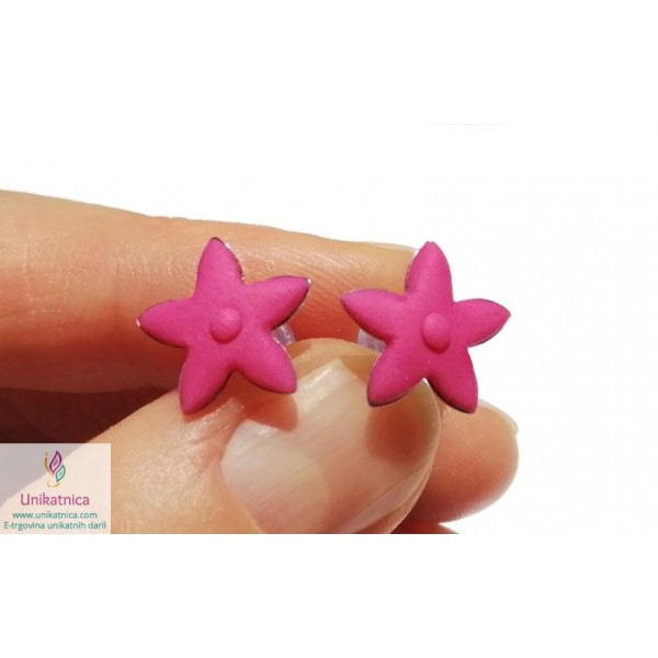 Unikatni, ročno izdelani uhani z motivom ciklamne zvezdice.