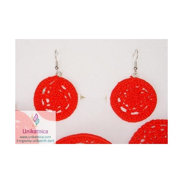 Zapenjanje kvačkanih uhanov: premer uhanov: 3,2 cm; skupaj z zaponko: 5,3 cm; uhani visijo na t.i. zaponki "ribja zanka".