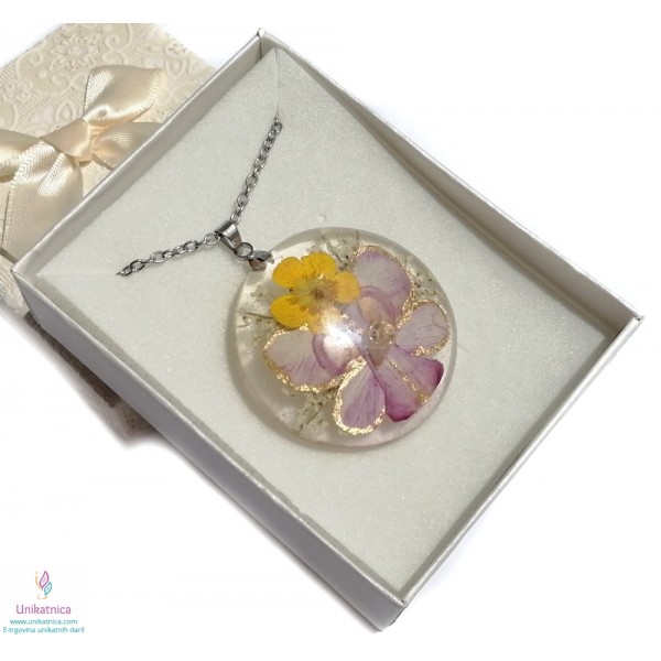 Pakiranje: cvetlično ogrlico prejmete zapakirano v lični darilni škatlici z zlatim trakcem