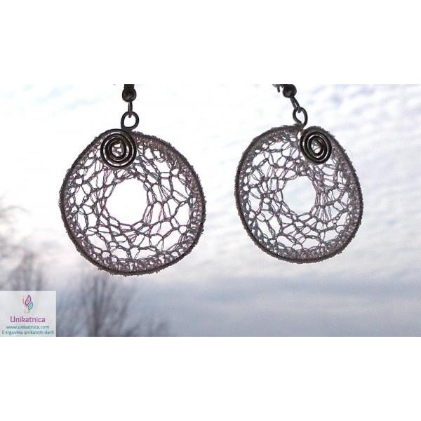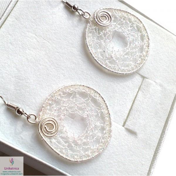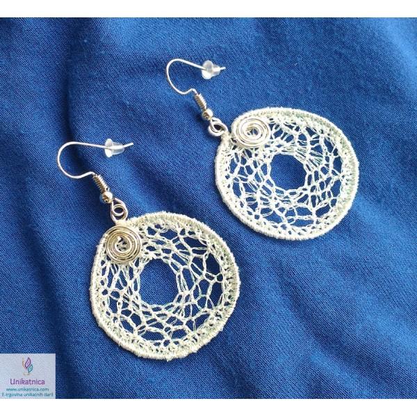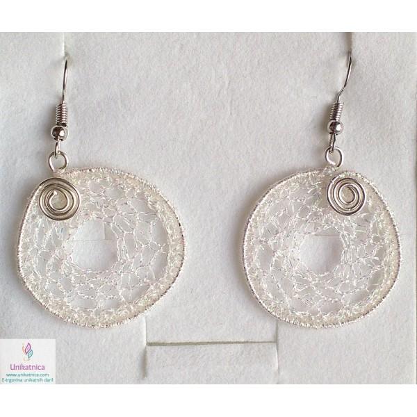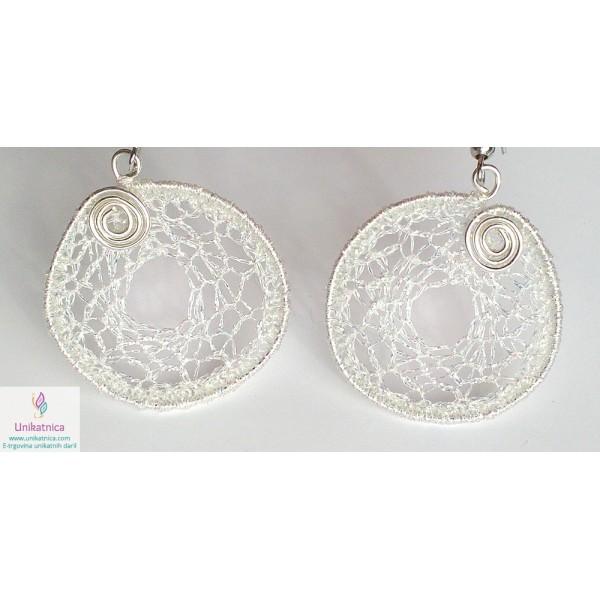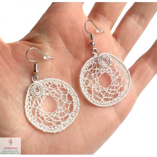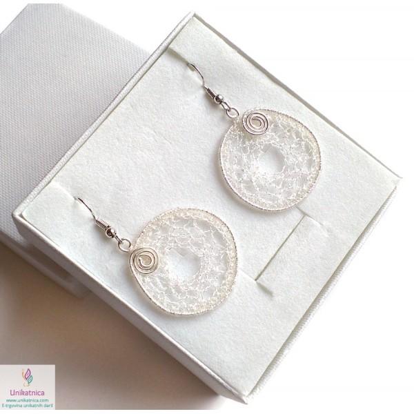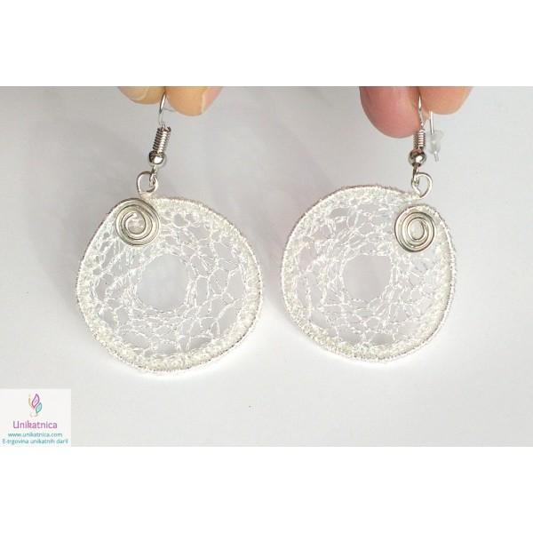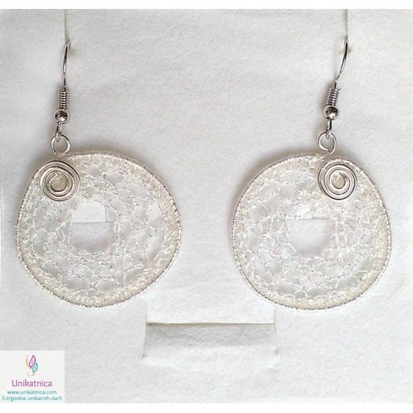 Kvačkani uhani, okrogli, svetleče bela prejica