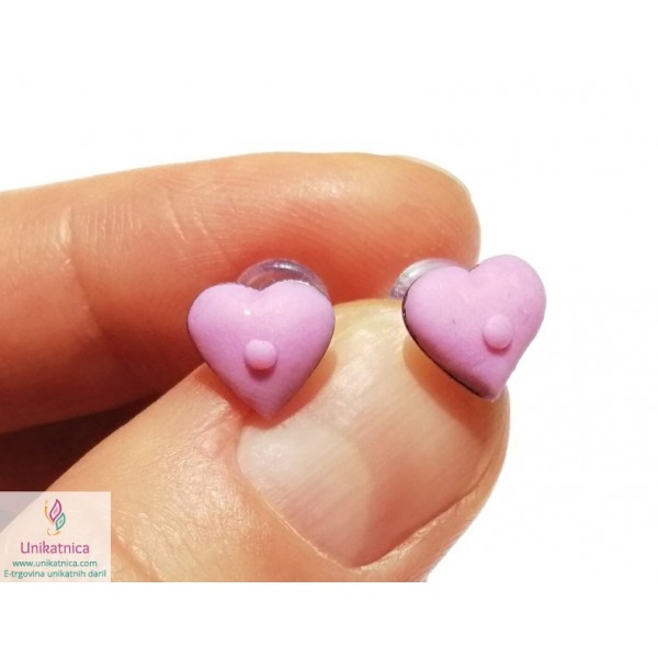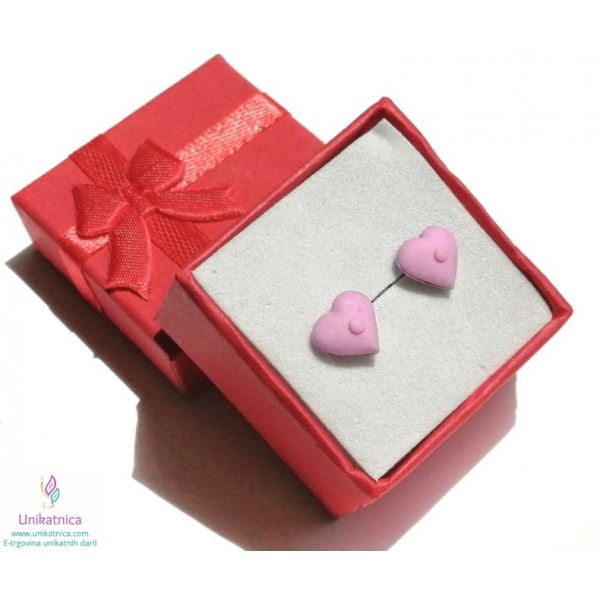 Unikatni, ročno izdelani uhani, v obliki roza srčkov.