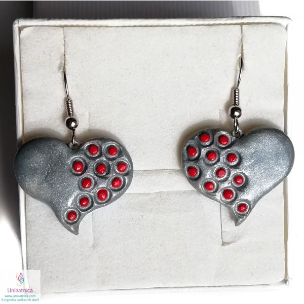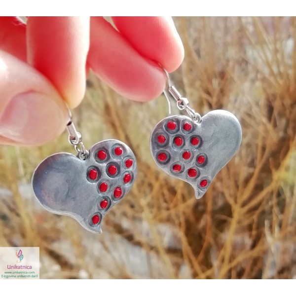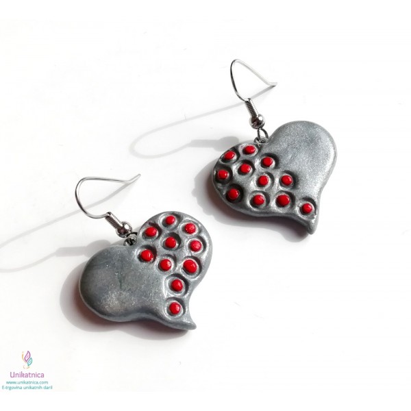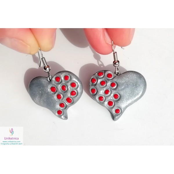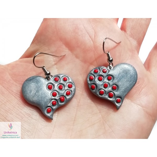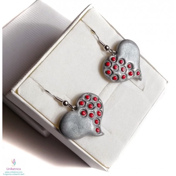 Unikatni uhani v obliki srca v srebrno rdeči barvi