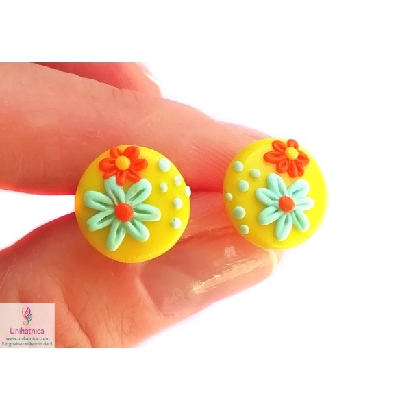 Uhani z motivom marjetic (rumena) na oranžni podlagi, so lično in uporabno darilo za za najrazličnejše priložnosti, namennjeni so tako ženskam, kot tudi deklicam. Uhani so brez niklja in koži prijazni.