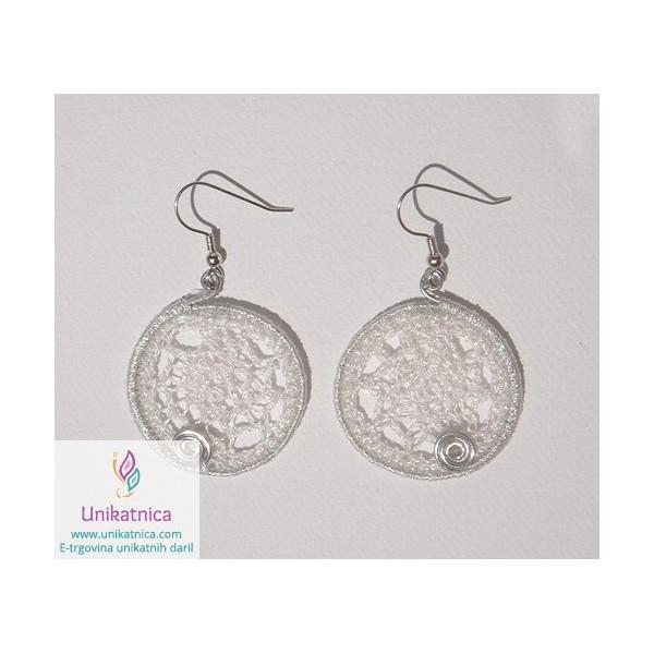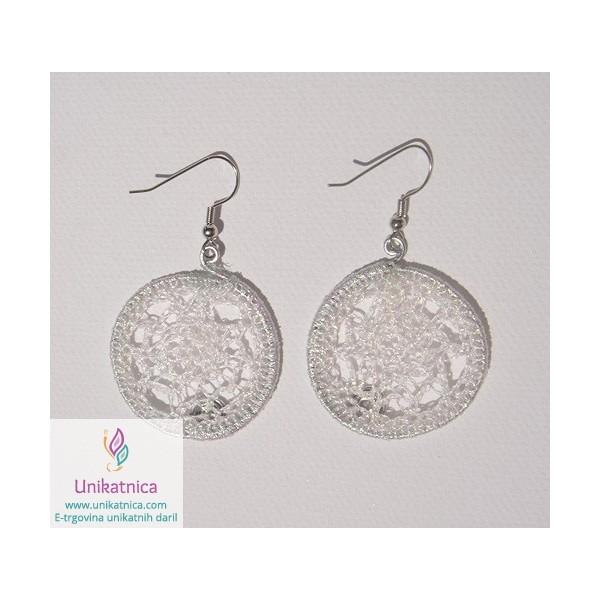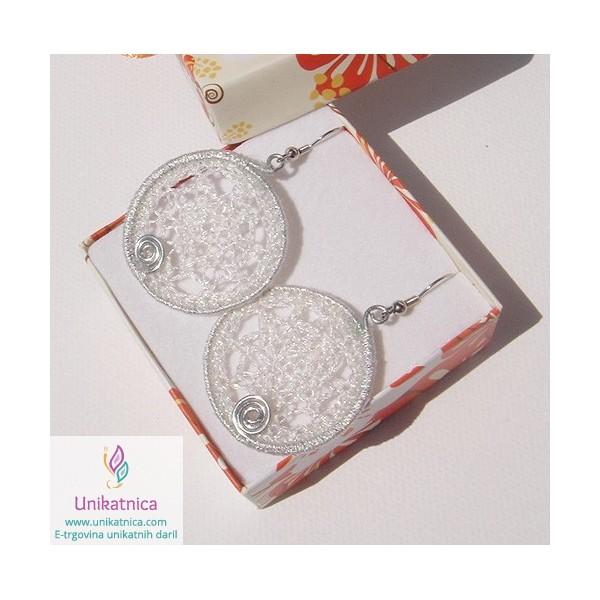 Ročno kvačkani uhani v belo zlati barvi so ženstven in zelo eleganten nakit, ki se bo čudovito podal na oblačila v številnih modrnih dodatkih. So izjemno lahki za nošenje. Vzorček belo zlatih uhanov je na vsaki strani drugačen, zato jih lahko nosite na obeh straneh.