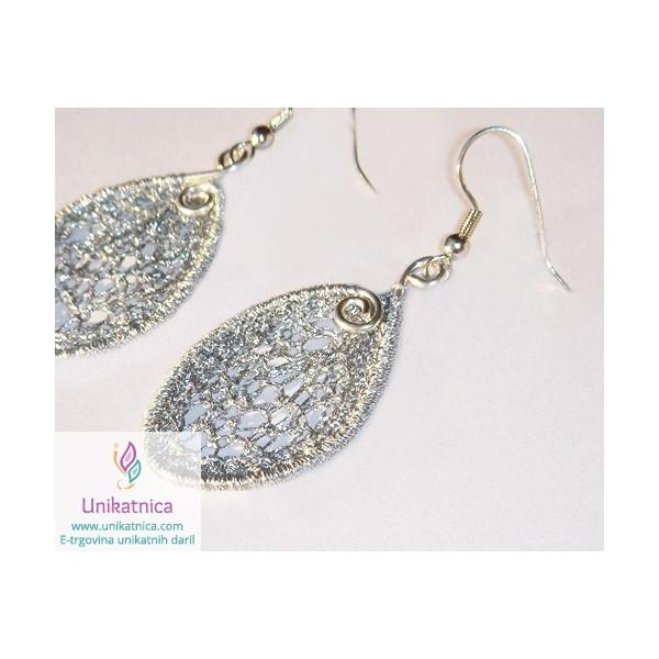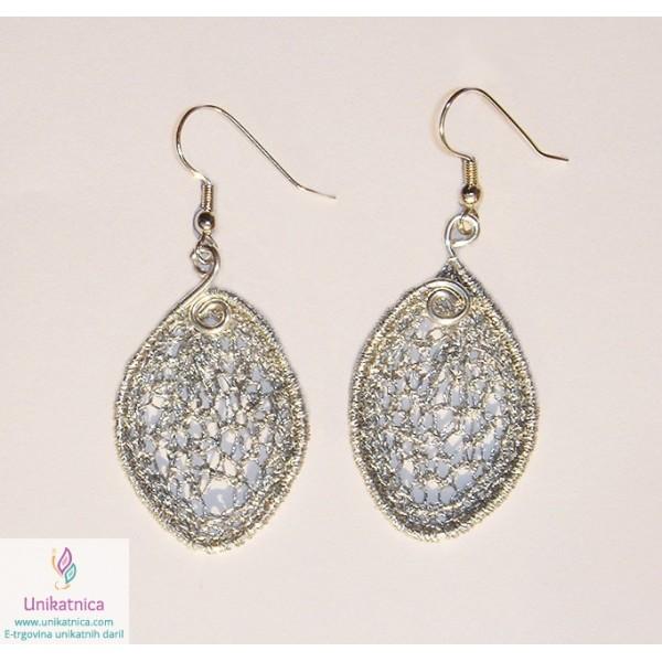 Ročno kvačkani uhani v srebrni barvi, ki jih krasi motiv spirale in kapljice, so ljubek, ženstven ter zelo opazen, uporaben in izviren modni nakit, ki se vam bo podal na oblačila v skoraj vseh odtenkih. So lahki za nošenje, na soncu in pod lučjo pa se bodo močno lesketali.